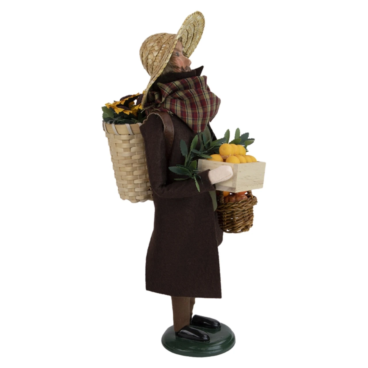 Experience the lively spirit of the streets of London with the Byers’ Choice Crier Man Selling Produce Caroler! This 13″ figure, meticulously handmade in Chalfont, PA, is the newest addition to the coveted Cries of London Collection. Clad in non-seasonal attire, he’s versatile enough to be displayed all year round. Offering a handful of fresh produce, his expressive face captures the bustling energy of a market vendor. An instant classic, this Crier Caroler continues a 25-year tradition of joy and uniqueness, reflecting high-quality craftsmanship and artistry. Limited to one year of production, it’s a must-have for Byers’ Choice collectors!