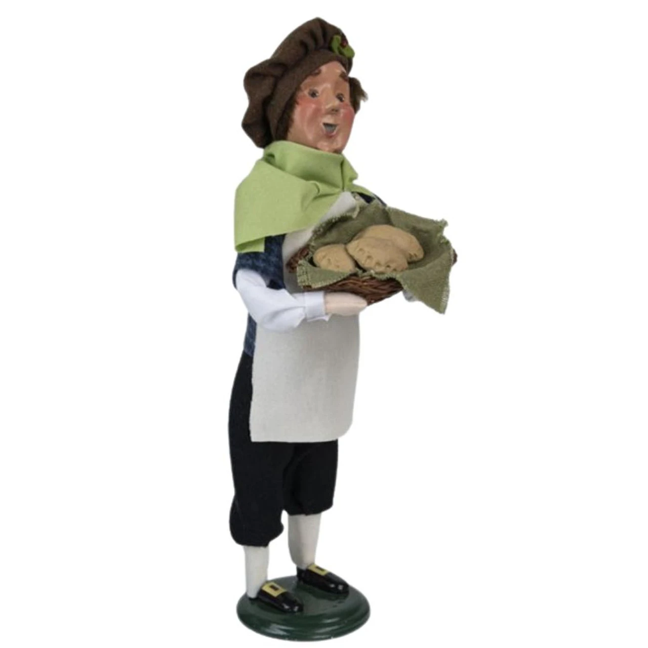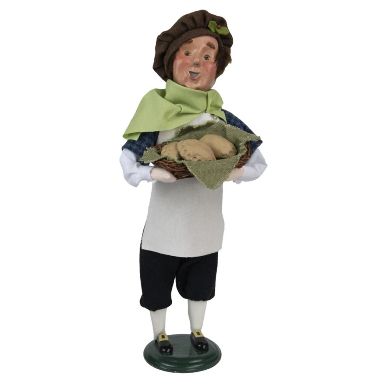 Experience a touch of London with the limited edition Byers’ Choice Cries of London Man With Meat Pies Caroler. Standing at 13 inches tall, this characterful caroler carries a basket of freshly baked meat pies, a symbolic nod to the vibrant life on London’s streets. Decked out in a lucky apron, the authenticity of this piece emanates from every detail. Continually in demand since Joyce’s first ‘Apple Lady’ in 1991, each piece in this series is limited to one year of production, making them sought-after collectibles. Delve into the enchanting world of Byers’ Choice and bring home a piece of history!