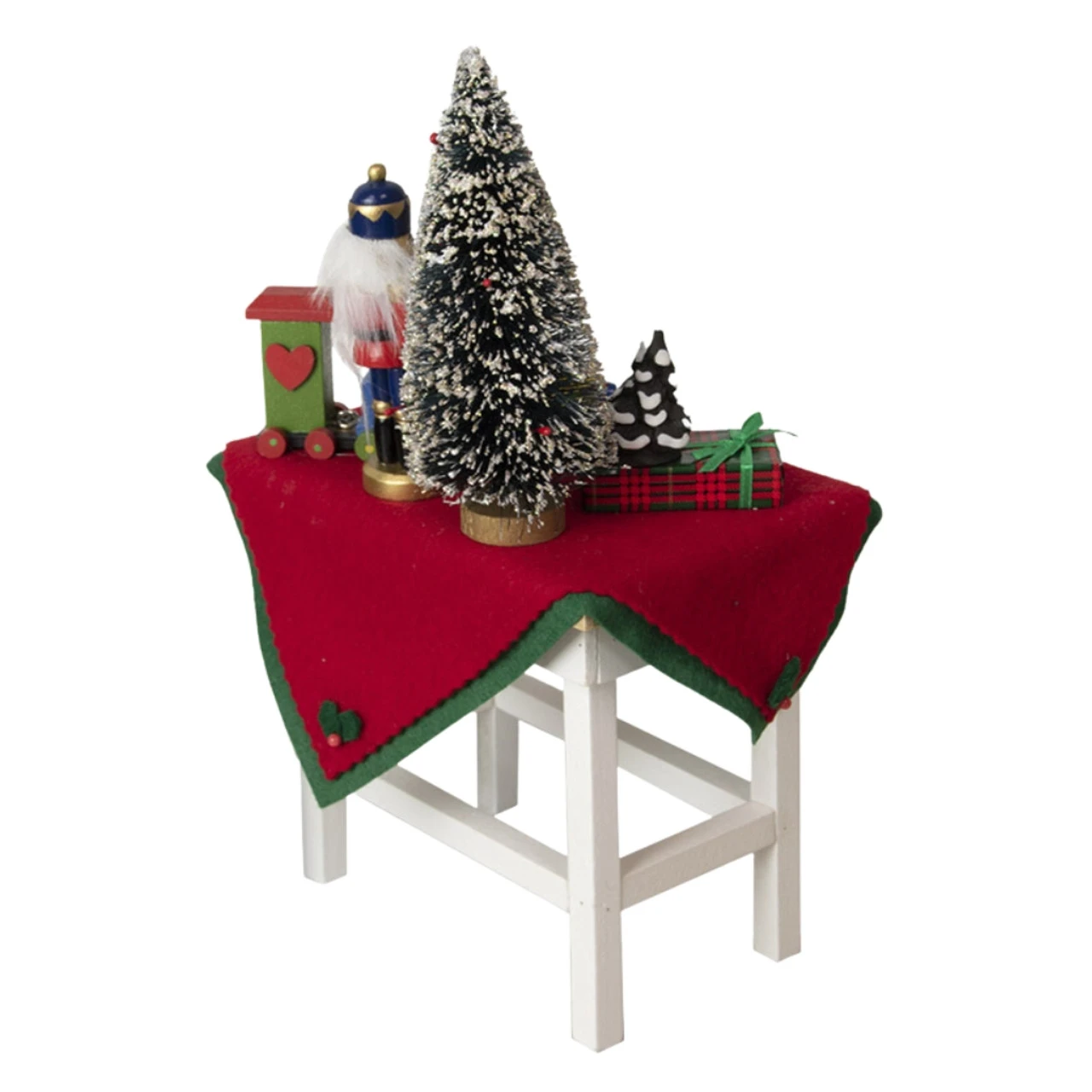 Meet our festive masterpiece: the Byers Choice Decorated Table Accessory! At 6″ long and 12″ tall, this delightful display transforms any surface into a holiday wonderland. The pristine white table, draped in a jubilant cover, is a heartwarming vignette of Yuletide joy. It’s adorned with a stoic nutcracker, guarding a treasure trove of gifts, while a charming toy train chugs by a dainty tree. And don’t forget the mouthwatering gingerbread cookie, stirring childhood memories! Let this charming piece take center stage in your festive decor!