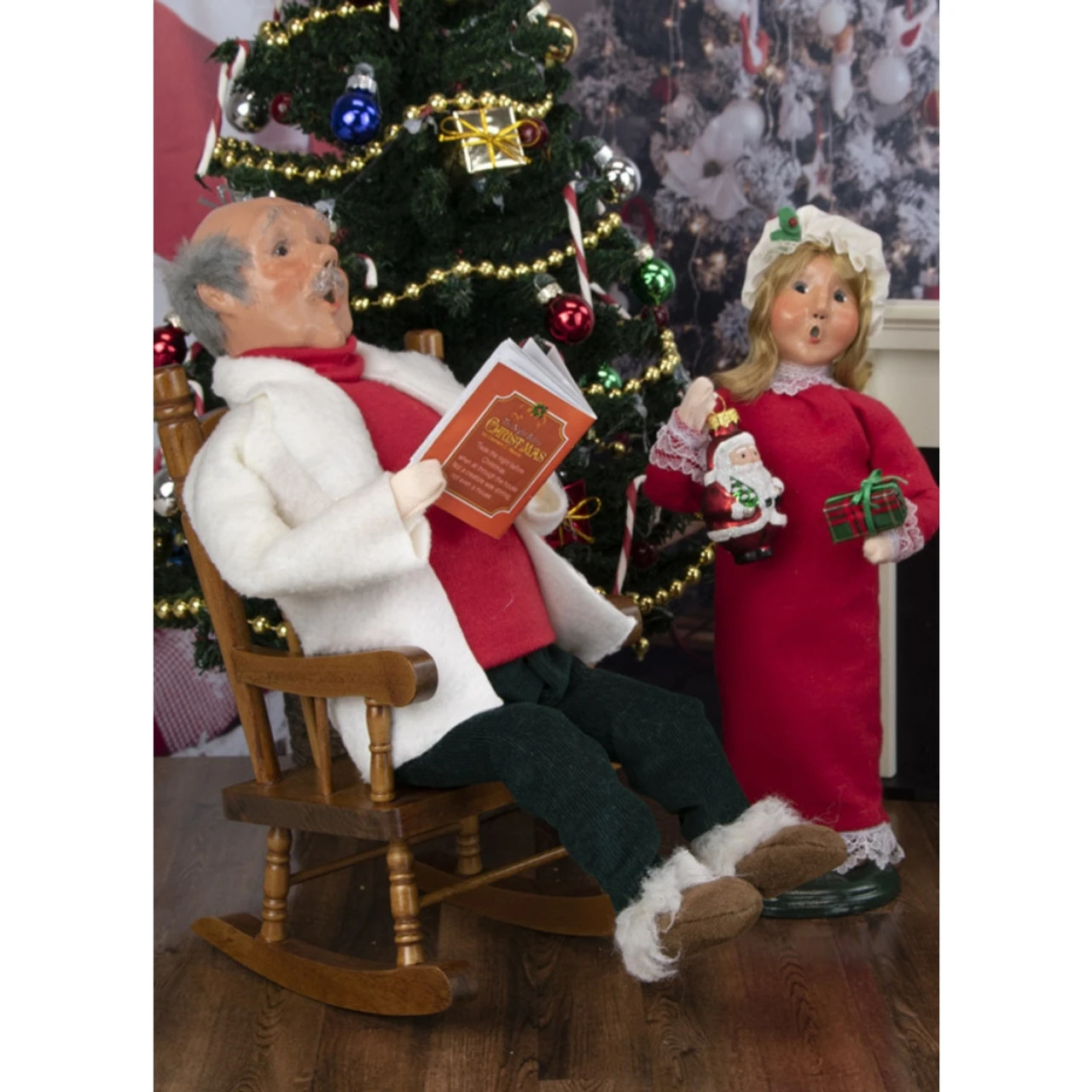 Embrace the magic of storytelling with the Byers’ Choice Grandpa On Rocker Caroler! Handmade in Chalfont, PA, this 11″ figure brings warmth and nostalgia to your Christmas decor. Sporting cozy pajamas and an engaging expression, he’s immersed in reading ‘Twas The Night Before Christmas to the grandkids. Every detail, from his comfy rocker to the timeless tale in his hands, is carefully crafted from high-quality materials. This Grandpa Caroler captures the essence of family, tradition, and holiday spirit!