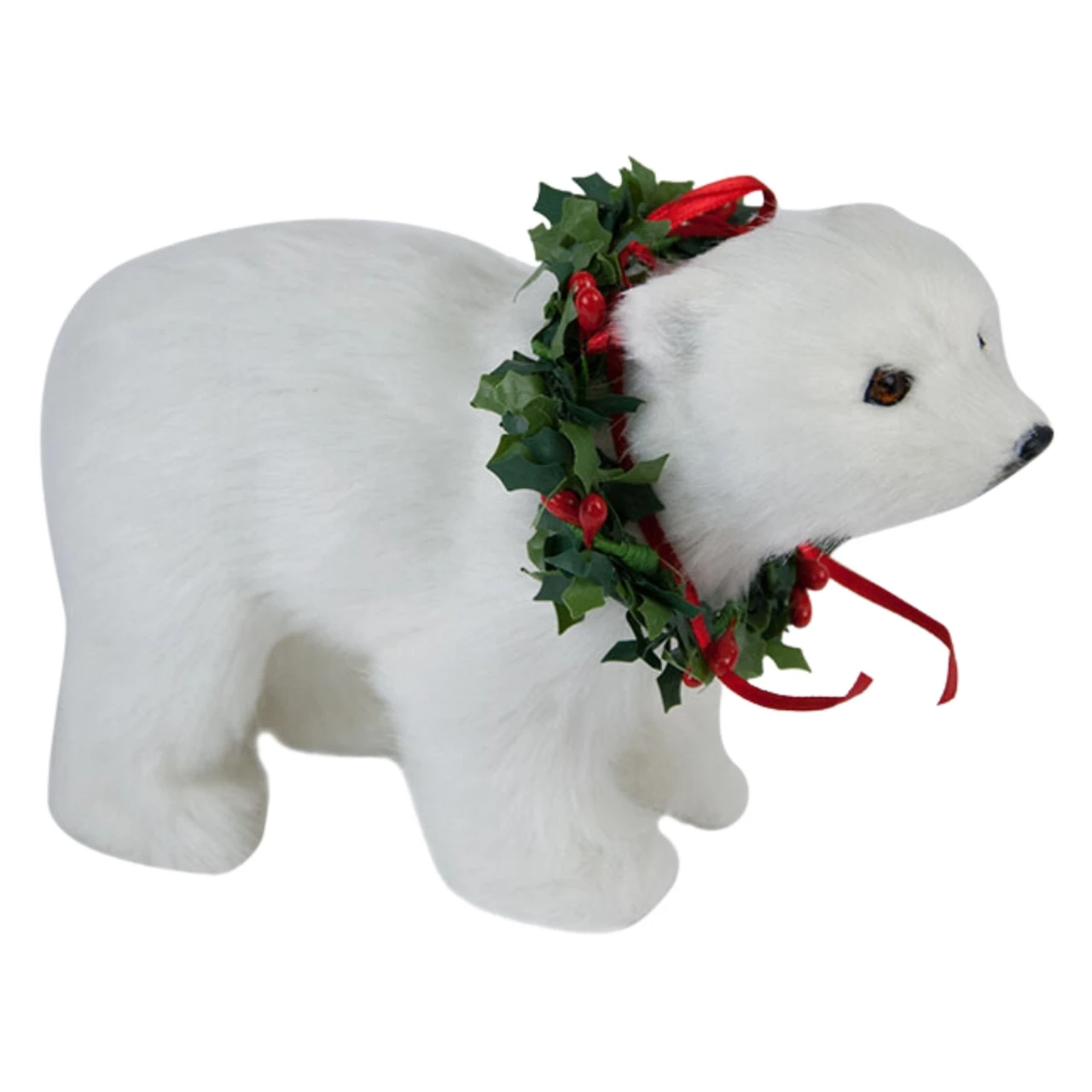 Add a touch of arctic charm to your festive decor with the Byers’ Choice Polar Bear Cub. At 5.5 inches tall, this irresistible figure is exquisitely crafted with snow-white fur, embodying the enchanting beauty of a winter wonderland. The Polar Bear Cub is further adorned with a festive Christmas wreath, infusing an extra dash of holiday cheer. With seamless coordination with other Byers’ Choice Carolers and Accessories, this delightful figure contributes to an immersive Christmas display, capturing the heart of the holiday season in its soft, adorable features.