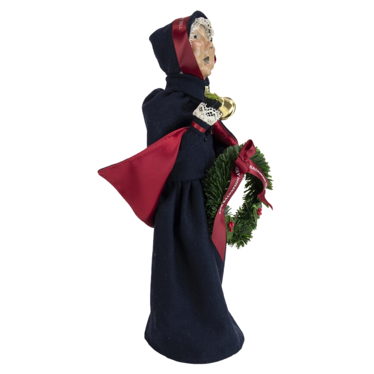 Join the spirit of giving with the Byers’ Choice Salvation Army Woman With Wreath Caroler! Handmade in Chalfont, PA, this 13″ figure is a cherished addition to the Salvation Army Collection. With an expressive face, she holds a wreath and brass bell, symbolizing the compassion of this renowned organization. Founded in 1865, the Salvation Army spreads love worldwide. Each year, Byers’ Choice pays tribute to their mission by introducing new characters. Embrace the joy of contributing to this worthy cause during the holiday season with this heartfelt caroler!