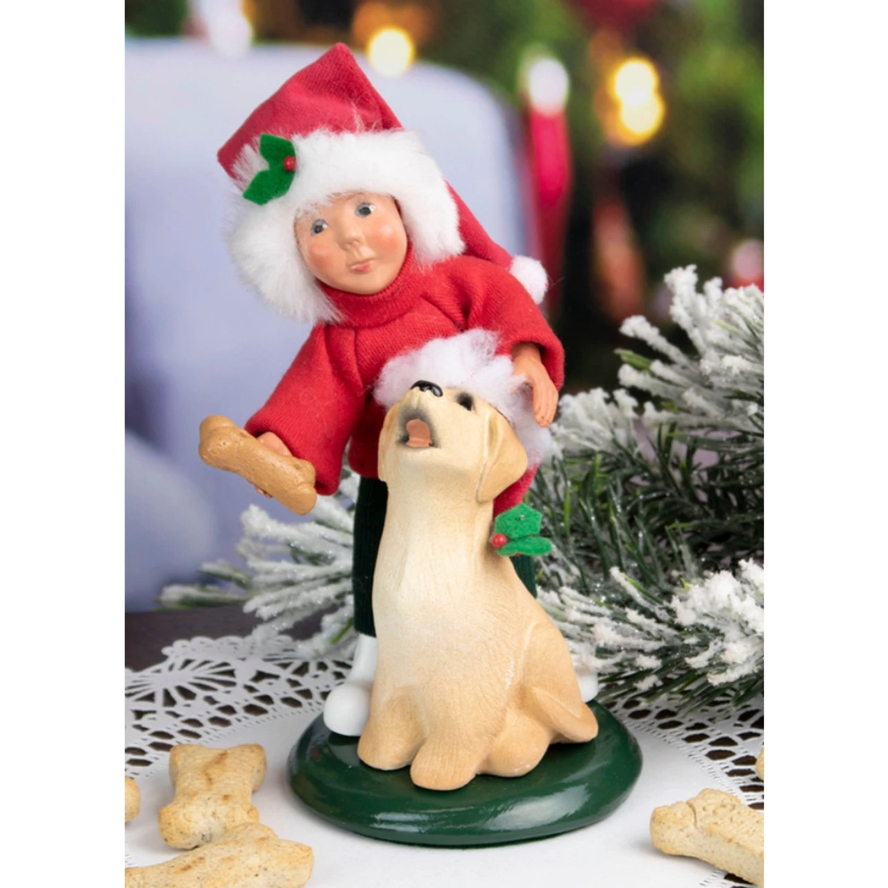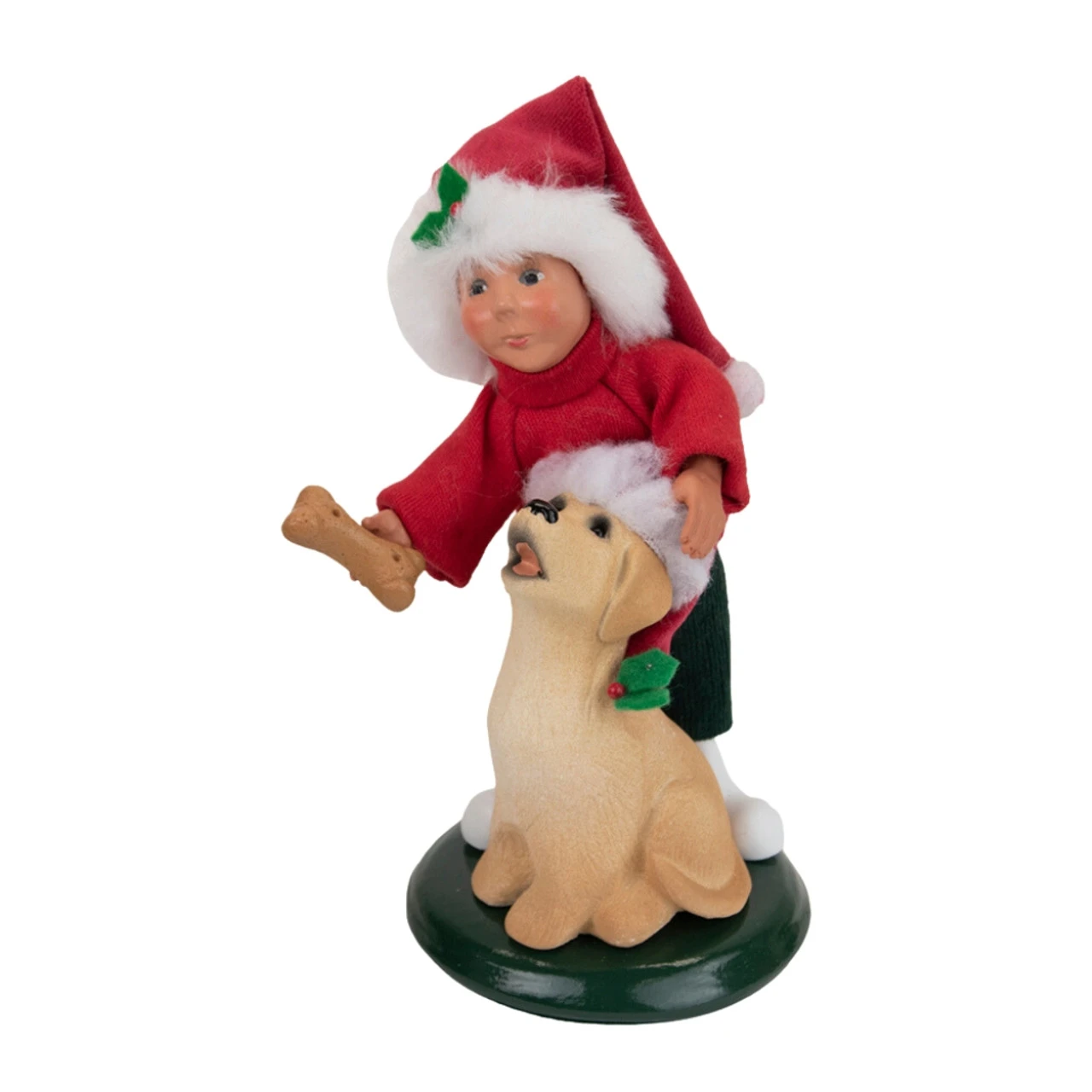 Experience the joy of a childhood Christmas with the Byers’ Choice Toddler With Dog Caroler. Standing at 7 inches tall, this charming figurine encapsulates the spirit of Yuletide companionship. A young boy, adorned with his favorite Santa hat, is depicted lovingly offering his faithful pup pal a special holiday treat. Every intricate detail, from the boy’s excited expression to the pup’s anticipating gaze, weaves a heartwarming tale of holiday cheer and friendship. This unique caroler is not just a decoration, but a celebration of the small yet magical moments that define the holiday season.