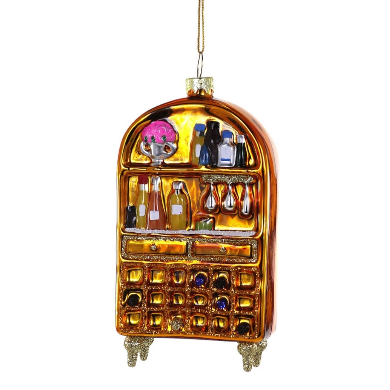 Transform your holiday decor with the Bar Cabinet Ornament by Cody Foster, a stylish and captivating addition to your festive display. Expertly crafted from glass, this ornament replicates the elegance of a classic bar cabinet, complete with intricate details that capture the spirit of sophisticated libations. Hang it on your Christmas tree or garland to infuse your celebrations with a touch of vintage charm and refined taste. Not just a delightful decoration, this ornament is a perfect gift for mixologists, home bar enthusiasts, and anyone who appreciates the art of cocktail crafting. Elevate your holiday ambiance and celebrate the spirit of hospitality with the Bar Cabinet Ornament by Cody Foster, a timeless and chic ornament that brings the essence of a well-stocked bar to your festivities.