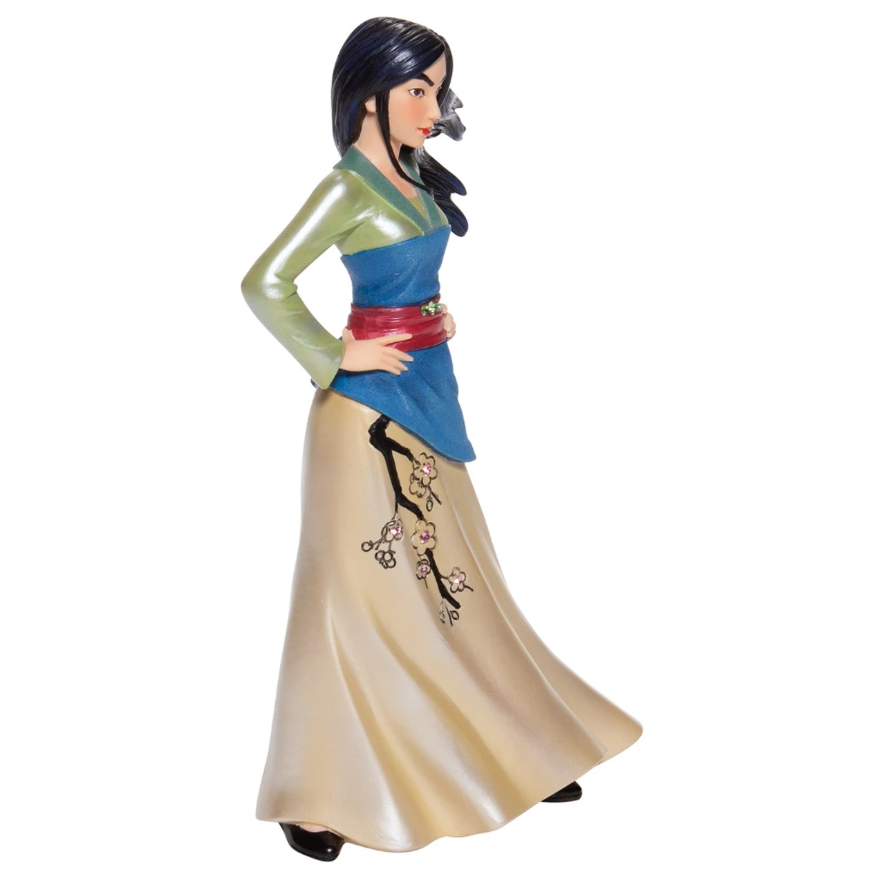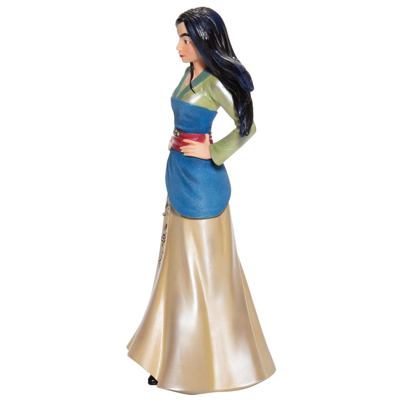Presenting the Disney Showcase Mulan Couture de Force Figurine, a breathtaking tribute to the 20th Anniversary of the beloved animated film, Mulan. This 8.07″ tall masterpiece captures the essence of the fearless Chinese warrior, embodying the true hero within us all. Designed in the US and meticulously hand-crafted in stone resin, skilled artisans have brought Mulan to life with vibrant iridescent paints and satin-like finishes. Her elegant outfit glistens with the richness of silk, and the bold addition of three faux gemstones on her belt adds a touch of opulence. This enchanting Mulan figurine is an exquisite addition to Disney Showcase’s renowned Couture de Force Collection, making it the perfect gift for fans, collectors, or anyone seeking to honor the courageous warrior spirit. Experience the magic of Mulan’s captivating story and let this stunning figurine serve as a daily reminder of your own inner strength and resilience.
