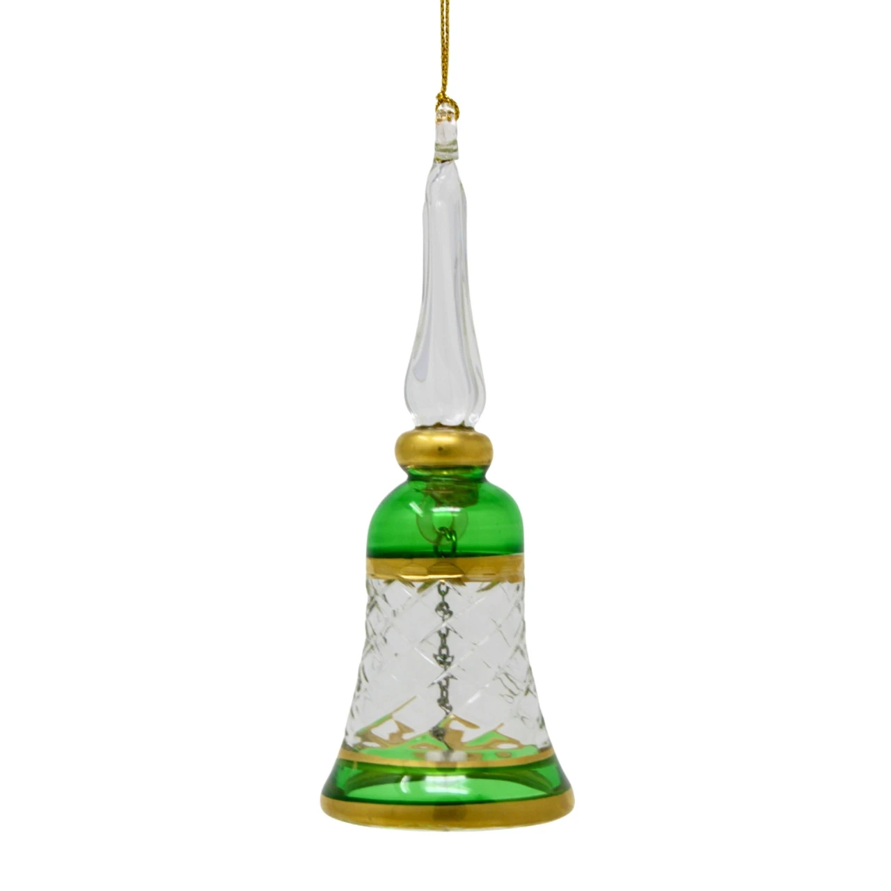 Elevate your holiday decor with the Egyptian Museum’s hand-blown Dark Green Gold Etched Bell Ornament. This unique piece, crafted by skilled Egyptian artisans, showcases the deep heritage of glassblowing techniques passed down from generation to generation.