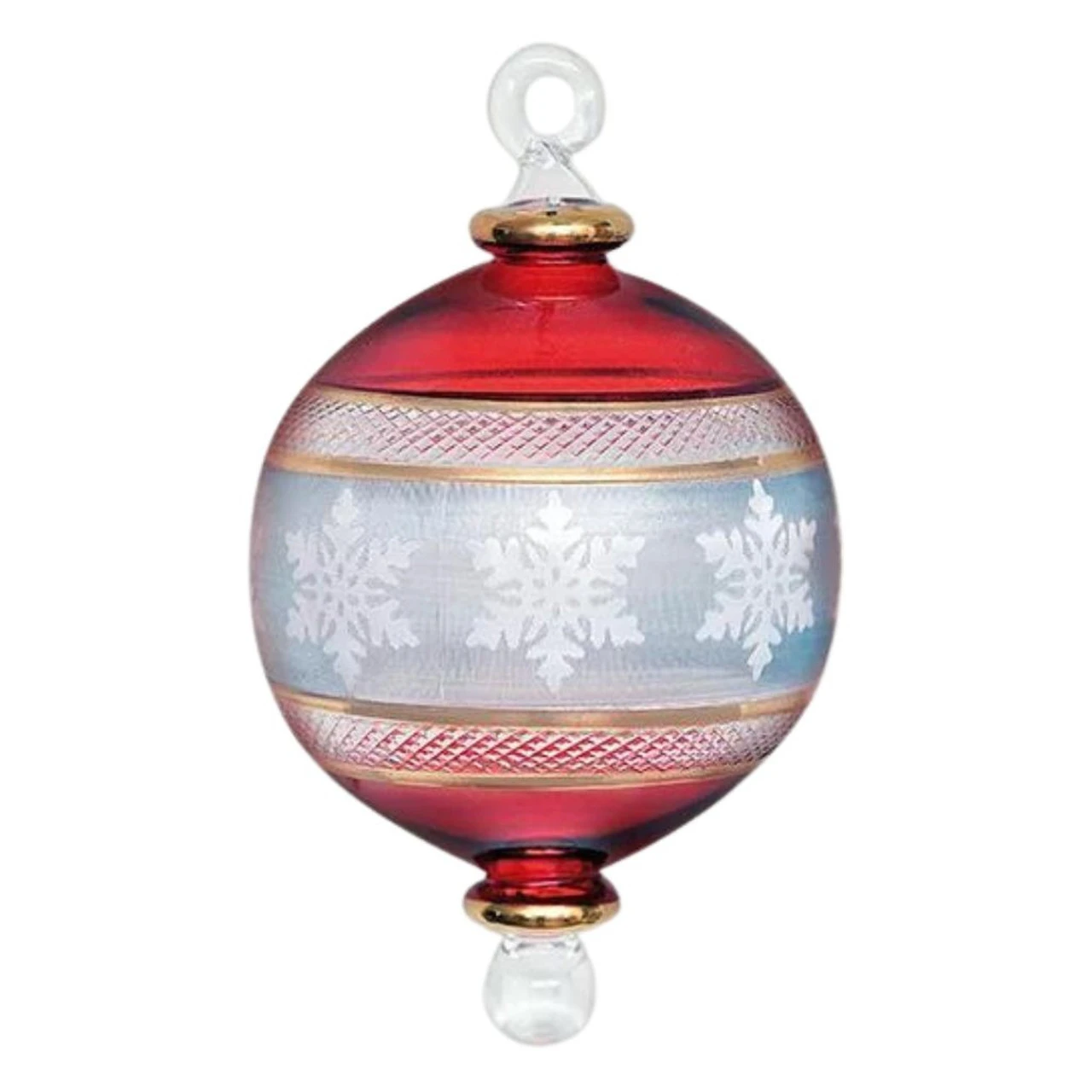 Experience the exquisite allure of the Egyptian Museum’s hand-blown glass Snowflake Etched Ornament. With a legacy spanning over 22 years, this ornament embodies the distinctive qualities that set Egyptian Museum glass apart from any other.