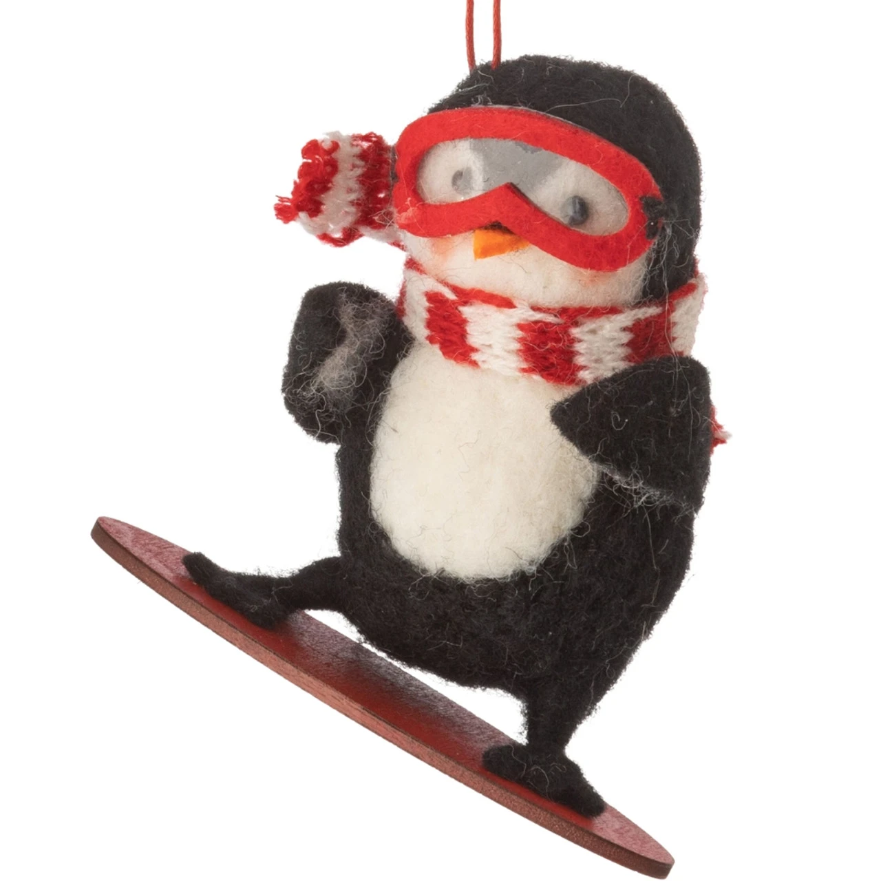 Introducing our Penguin On Snowboard Ornament, a delightful addition to your winter-inspired decorations.