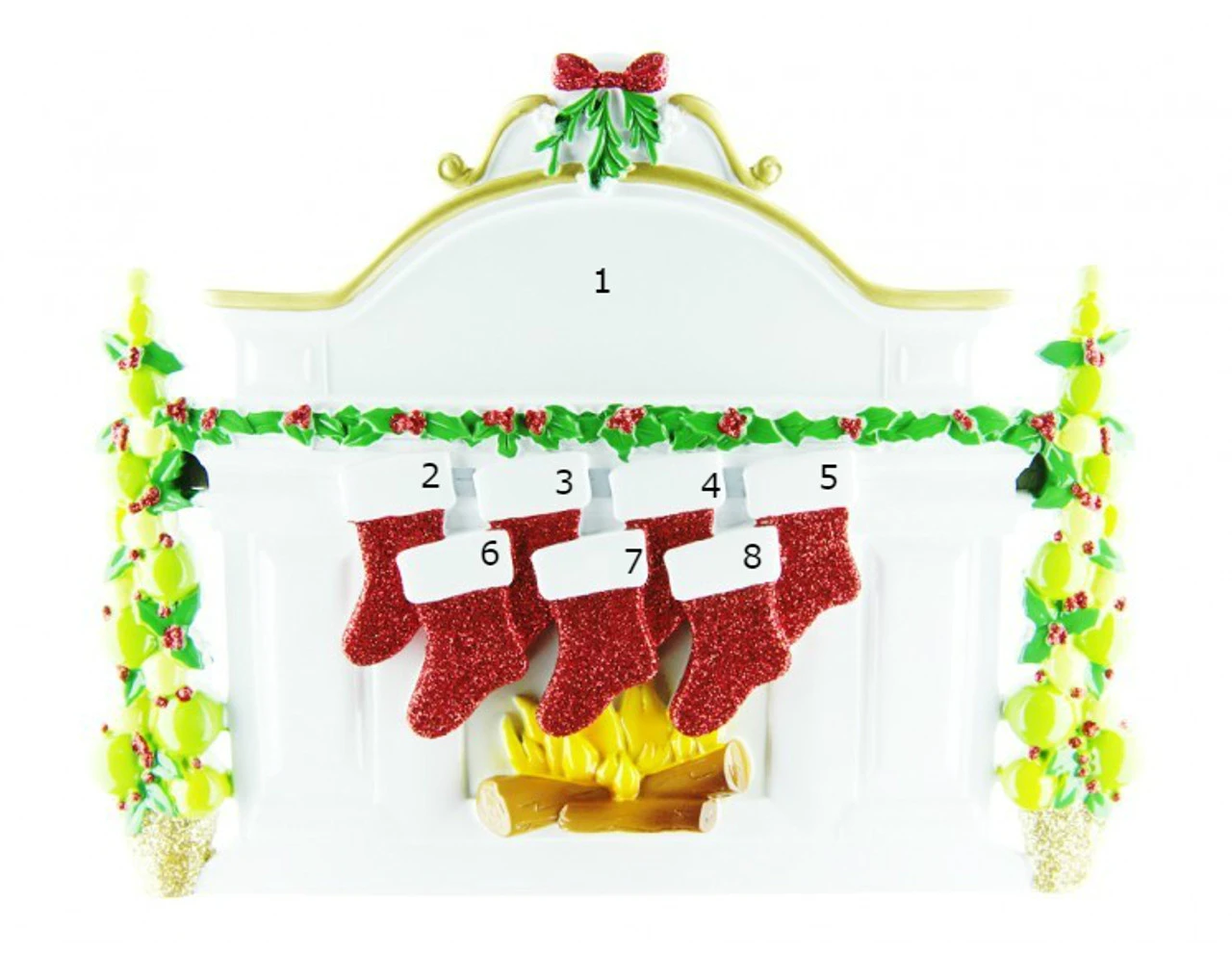 - 7 Sparkling Red Stockings hanging form a mantle piece to personalize