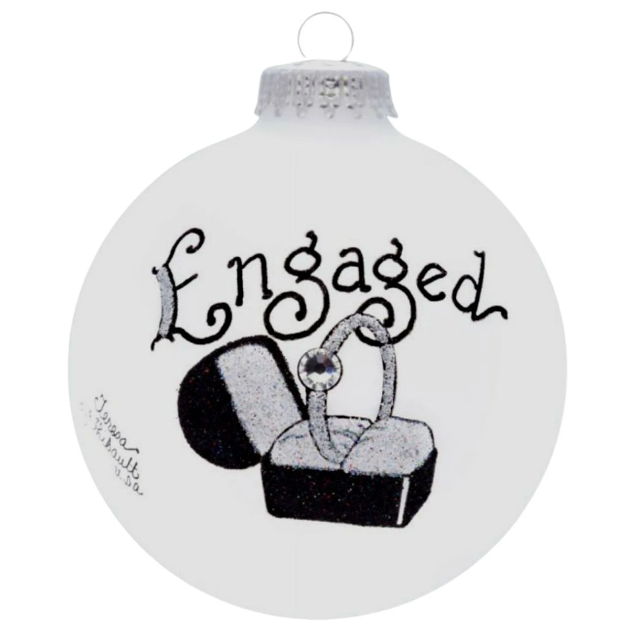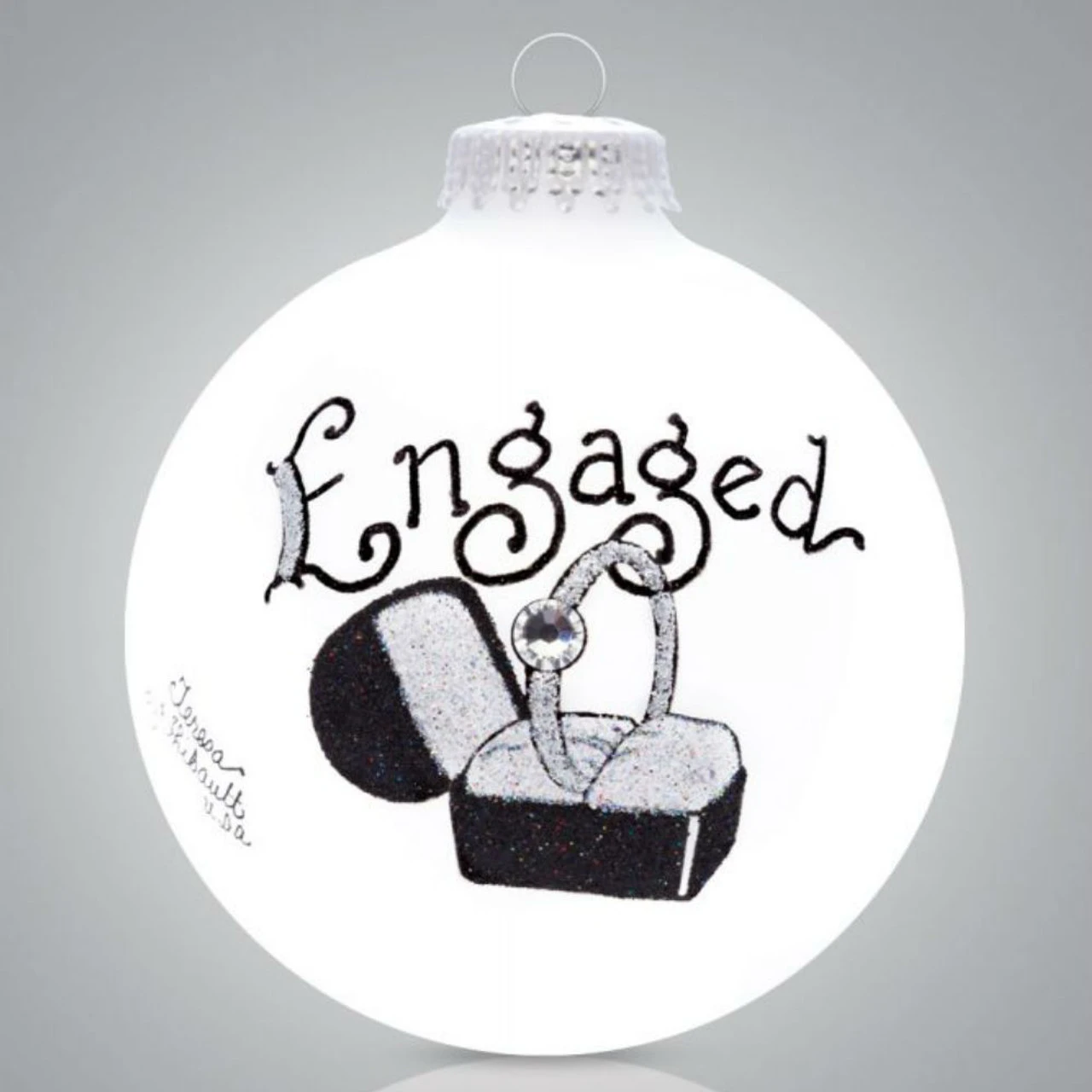 Engaged Ornament by All American company Heart Gifts by Teresa, this Hand Painted Glass Ornament is especially designed for Engaged, and proudly source all decorative materials used from American companies – this wonderful glass ornament is inscribed with: