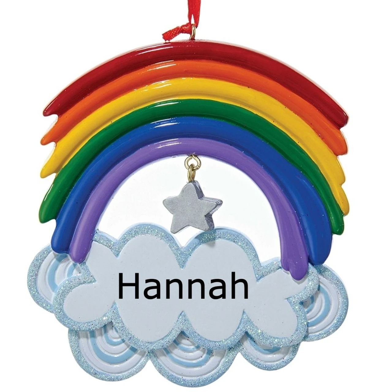 Rainbows appear after the rain and are a symbol of fresh starts and new beginnings. Honor someone starting fresh or just their love of rainbows with this beautifully crafted rainbow ornament. Our talented Christmas Loft Elves will personalize this ornament with names/dates free of charge! Names and dates will be written as they appear in your order. Please make sure to check all names for spelling, capitalization, and order before submitting your purchase.Â