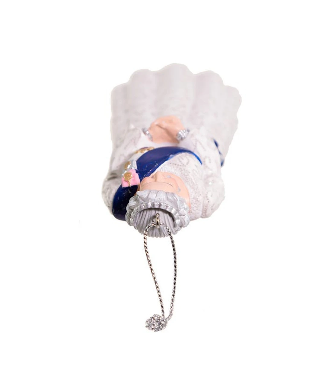 Celebrating her life and legacy serving 70 years as monarch the beloved Queen is represented here in her Platinum Jubilee dress with amazing detail including a sparkling tiara, matching jewelry and a lovely white gown with a blue sash