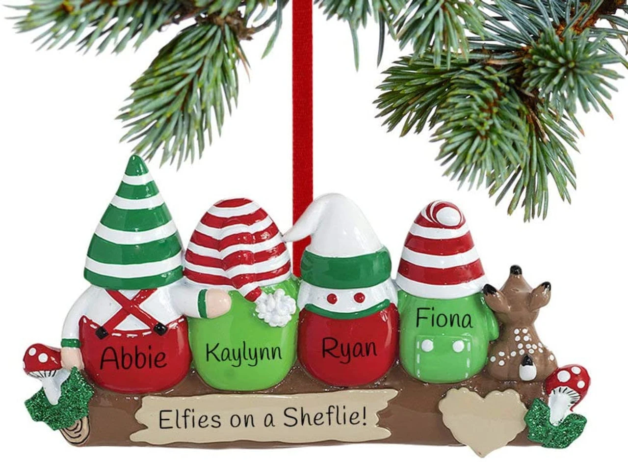 Personalized Gnome on Tree Family of 4 Ornament