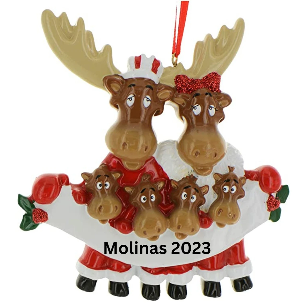 Step into a forest fairytale with our Personalized Moose Family of 6 Ornament! Personalized by our imaginative Christmas Loft Elves, this ornament features a delightful moose family, adding a rustic charm to your Christmas tree. Personalized with names and dates as you specify, it transforms into a special holiday keepsake. And here’s the best part – the personalization is on us! Just ensure all names are spelled correctly and are in the desired order before confirming your purchase. Add some woodland wonder to your holiday!