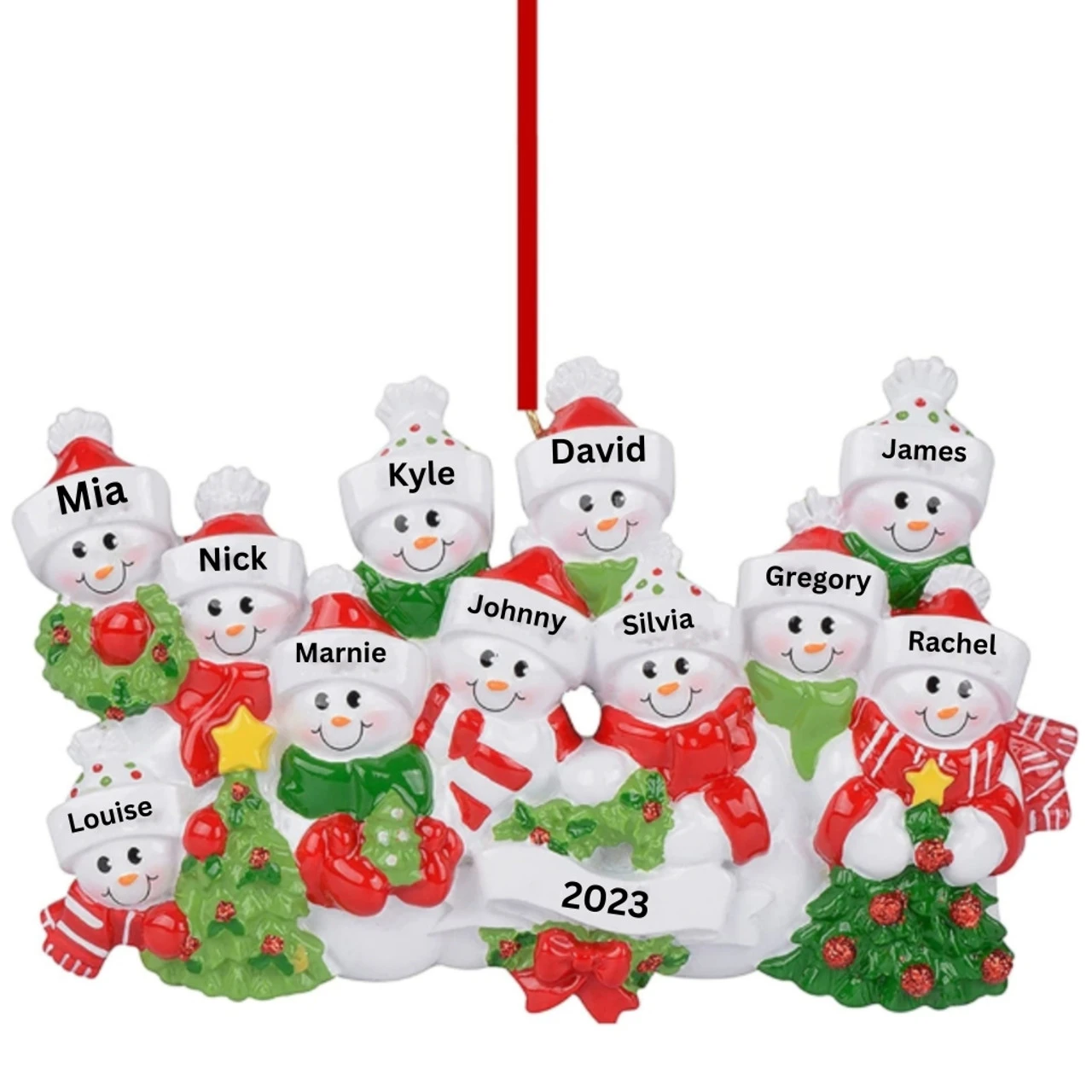 Embrace the joy of a large family with our Personalized Snow Family of 11 Ornament! Personalized for you by our gifted Christmas Loft Elves, this ornament boasts an impressive snowfolk clan, celebrating the merry chaos of a big family. It’s more than a decoration—it’s a story, personalized with names and dates you provide. But remember, the elves will replicate your text to the letter, so triple-check your spelling, capitalization, and order before clicking ‘Buy’. Make your tree a testament to love and laughter!