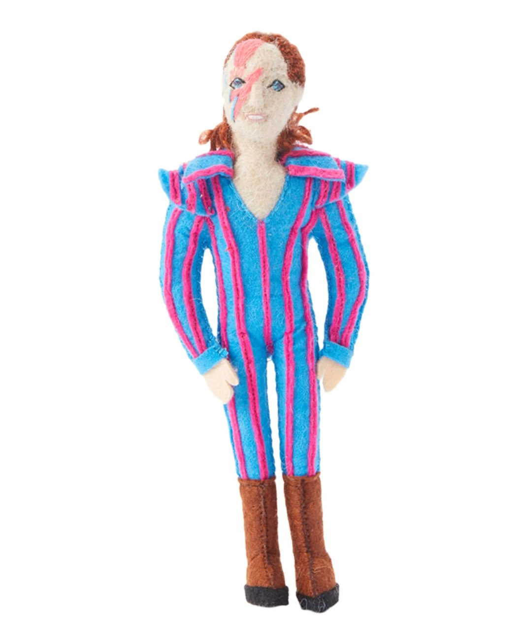 Rock this holiday season with this handmade David Bowie Christmas ornament. This David Bowie ornament would make a great gift any time of the year. The Figure Ornament Collection are created using locally resourced wool. The dedication and care that our artists put into bringing each ornament to life is reflected in the positive energy that the ornament provides to the space where it is hung.